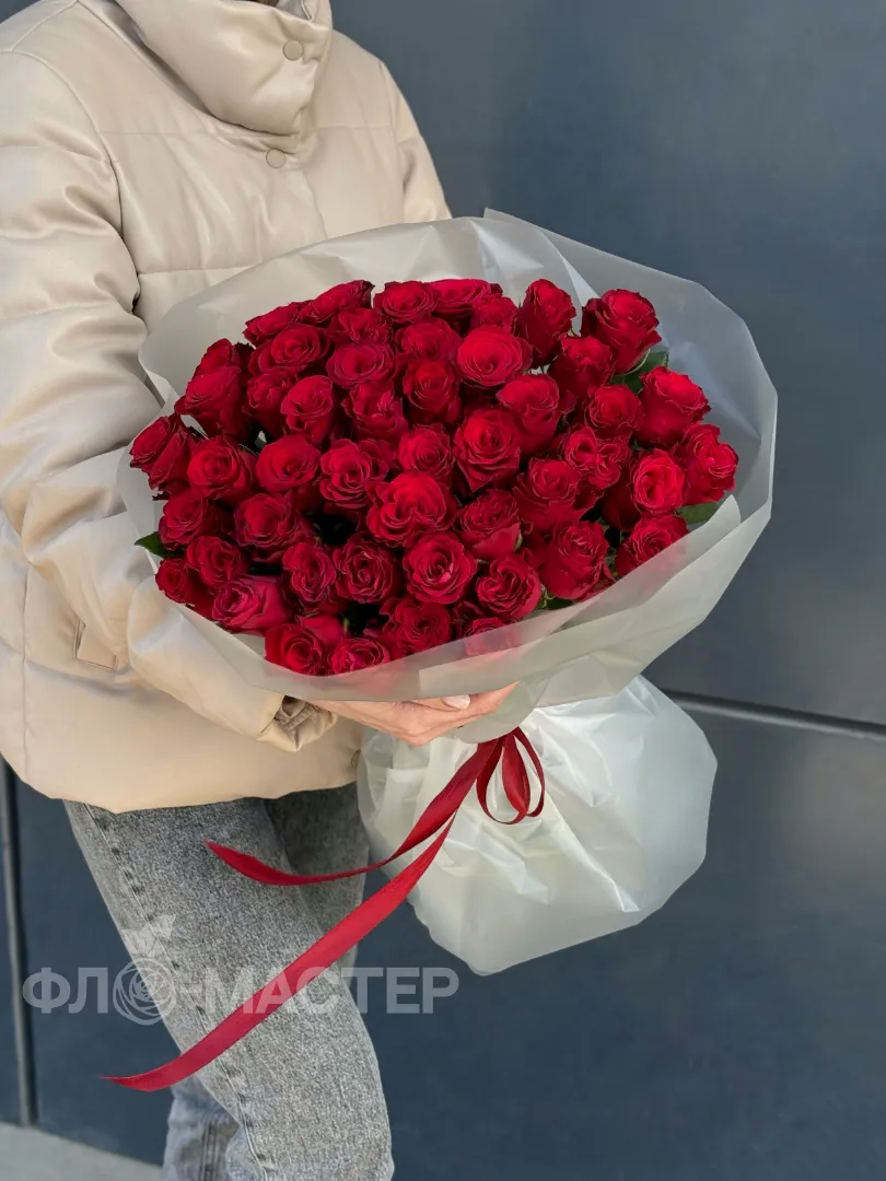 Красные розы 50см 51шт