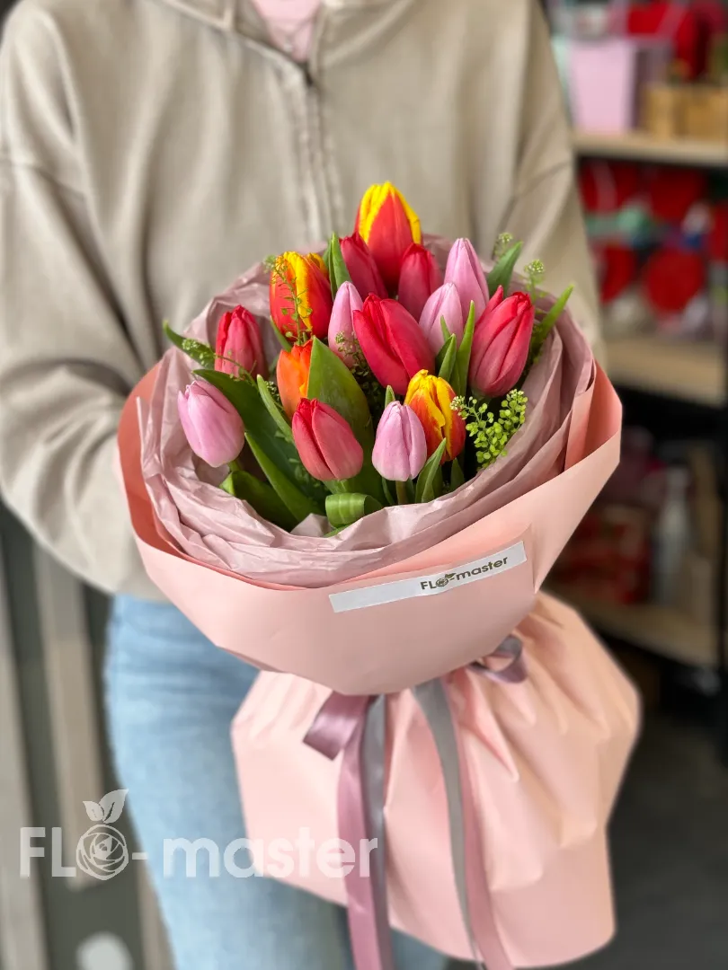 Цвет тюльпанов может отличаться в зависимости от наличия в магазине.