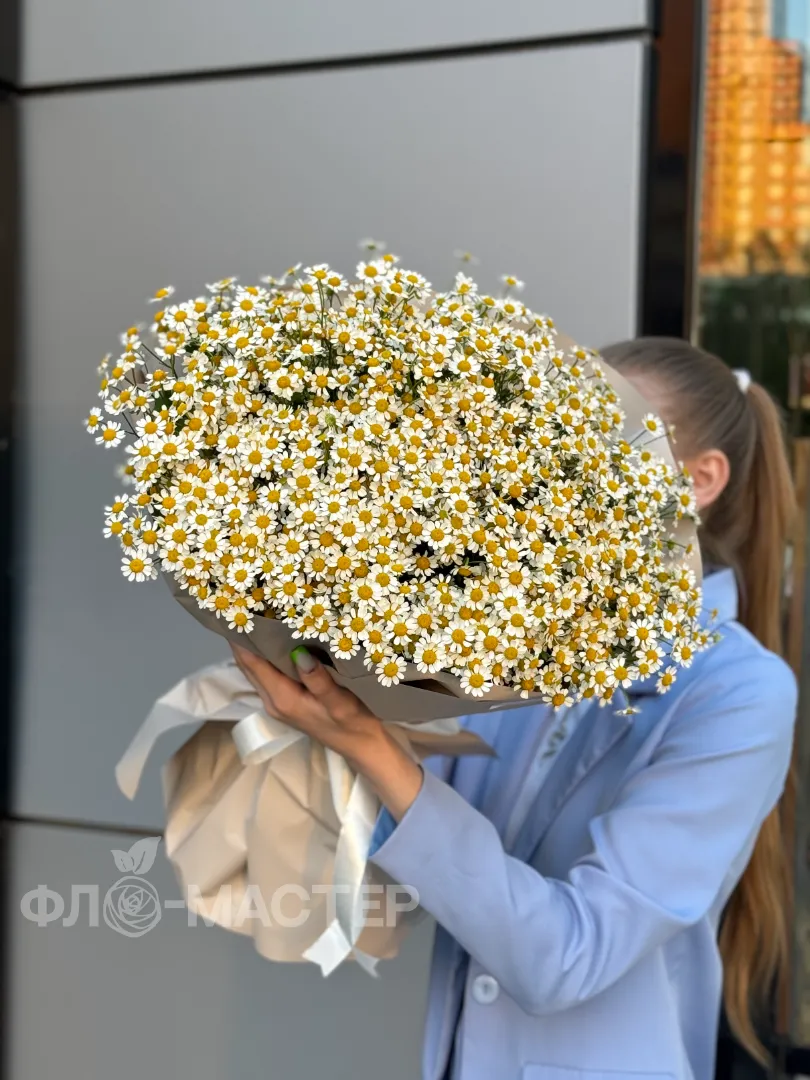 Мелкие ромашки создают ощущение легкости и природной красоты, напоминая о простых радостях и солнечных днях. Идеальный выбор для тех, кто ценит искренность и искренние чувства. Пусть этот букет подарит улыбку и наполнит сердце теплом!