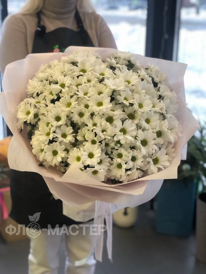 Монобукет с ромашковыми хризантемами из 21 штуки будут долго радовать ваших любимых