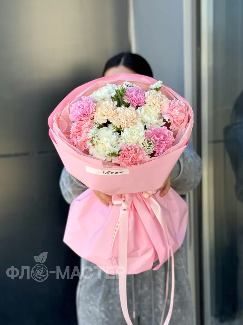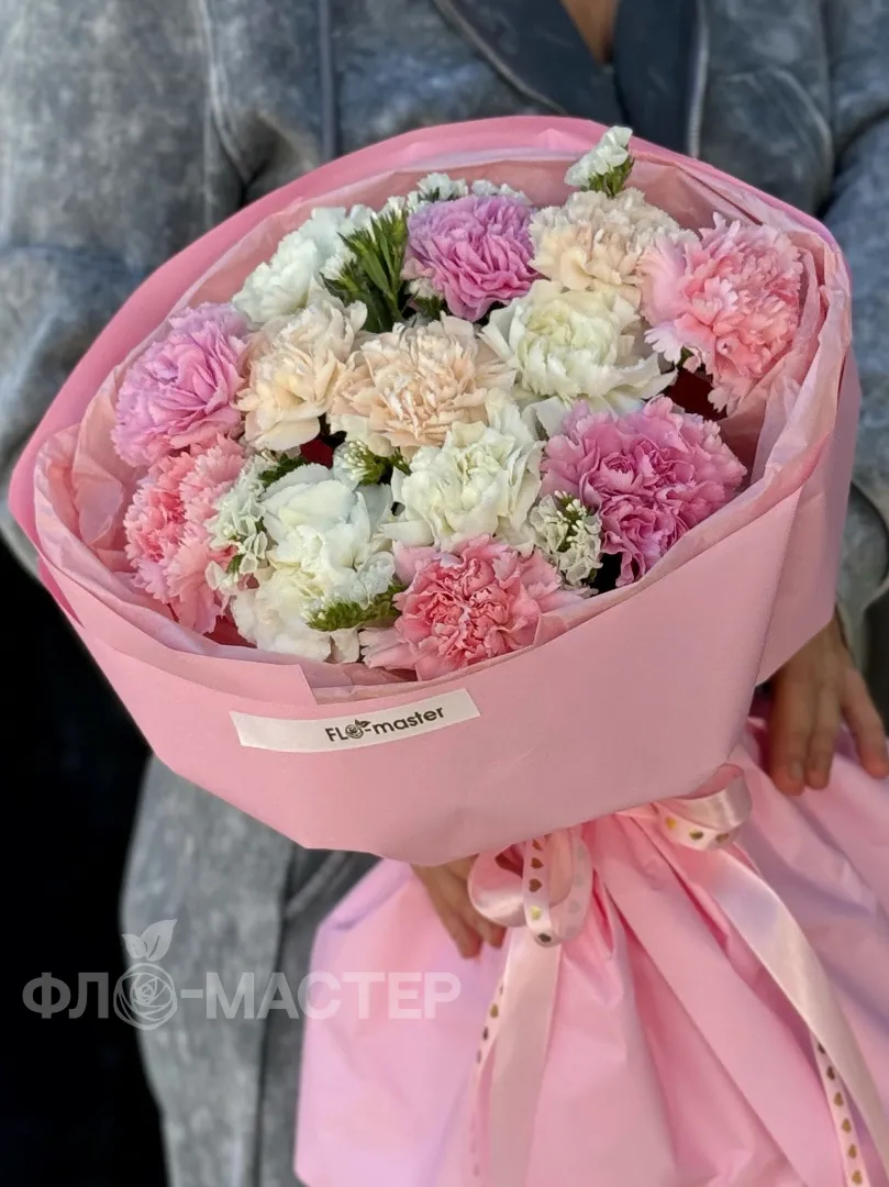 Карамельный букет из разноцветных диантусов, нежных оттенков.