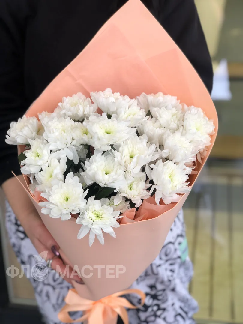 Букет из хризантем будет долго радовать получателя своей красотой и ароматом.