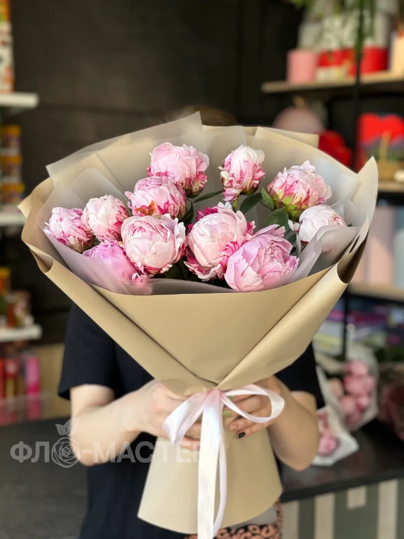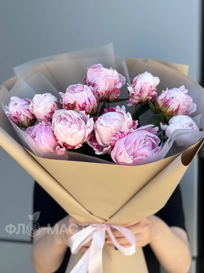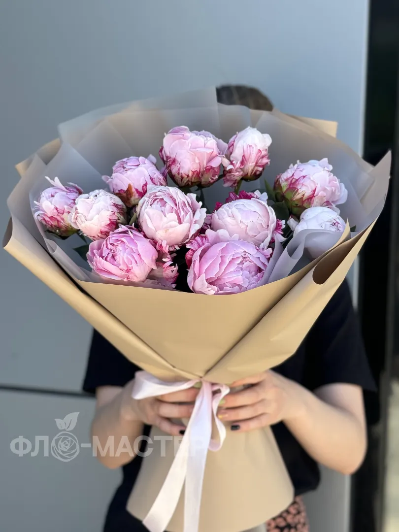 Зефирный букет из 11 пионов в упаковке, с каждым днём букет будет становиться все больше и красивее.