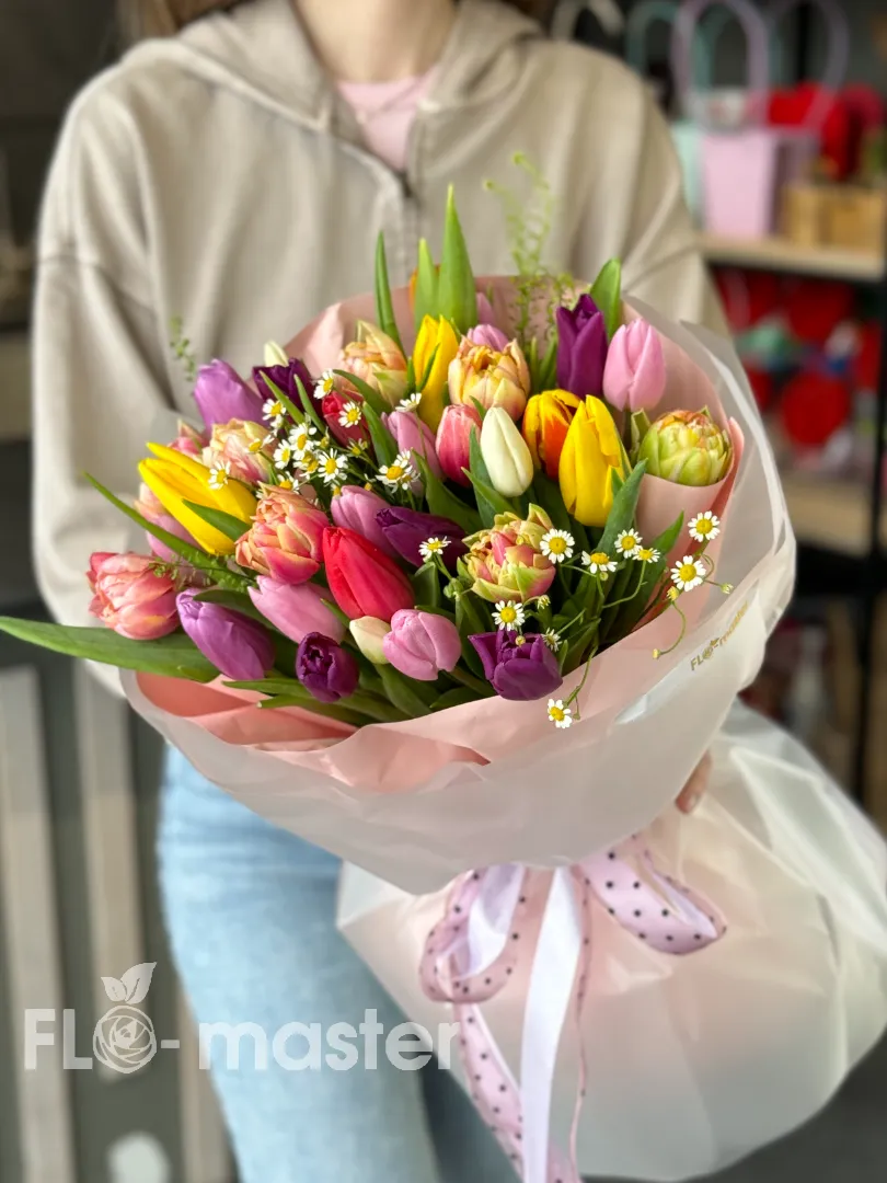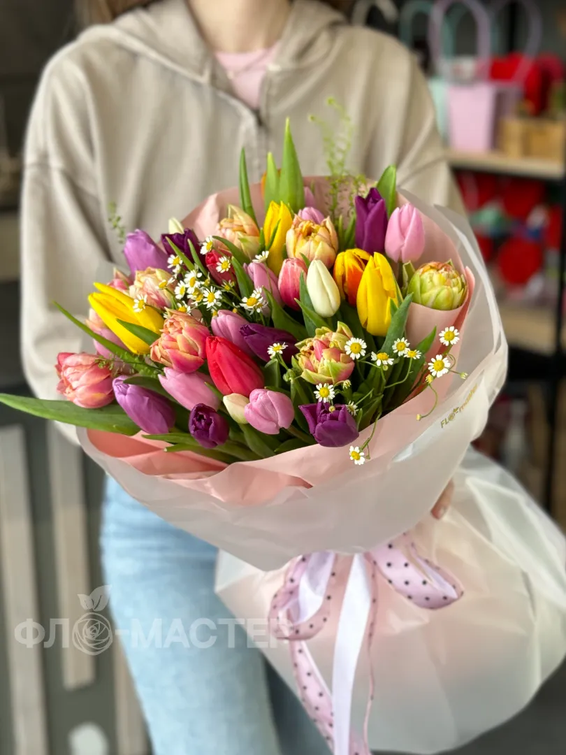 Закажите весну для своей любимой. Цвет тюльпанов может отличаться в зависимости от наличия в магазине.