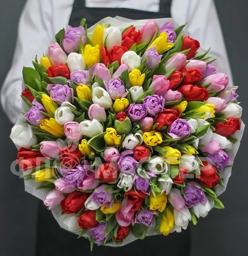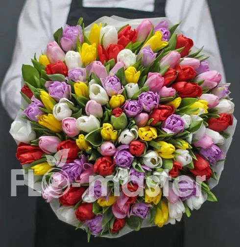 Микс из 101 тюльпана. Цвет тюльпанов может отличаться в зависимости от наличия в магазине.