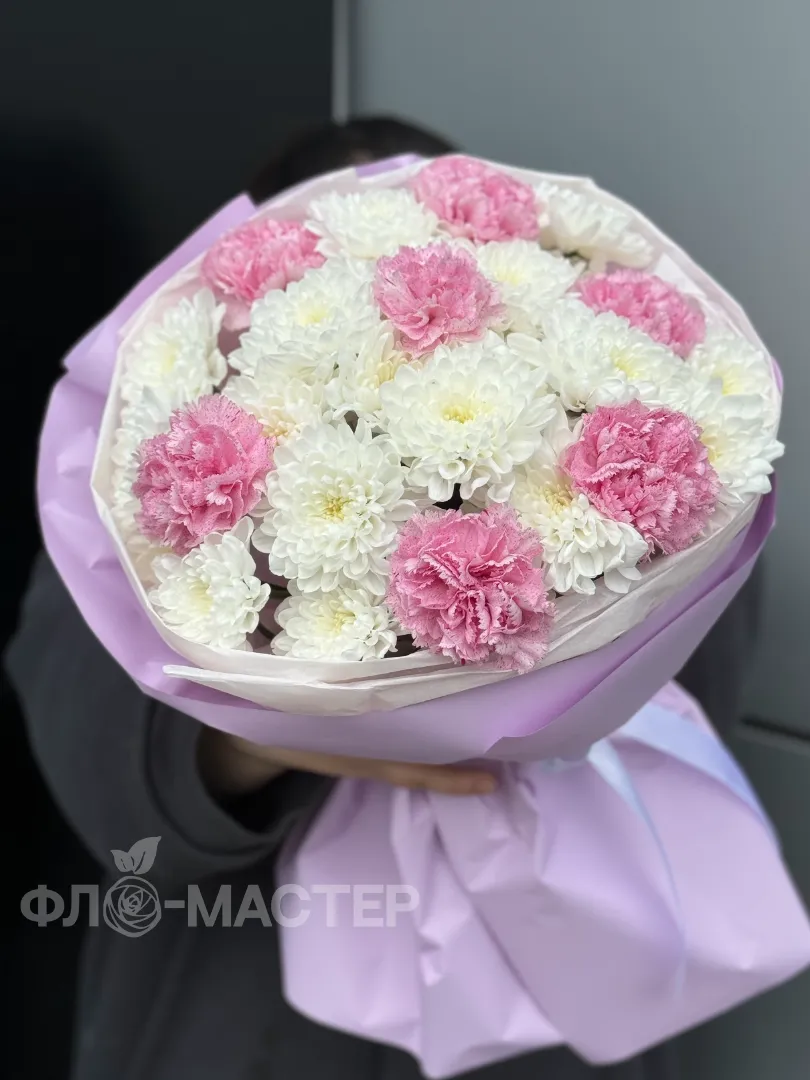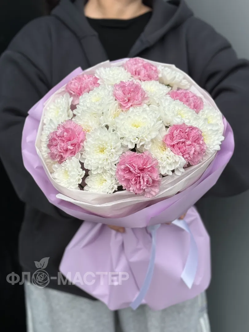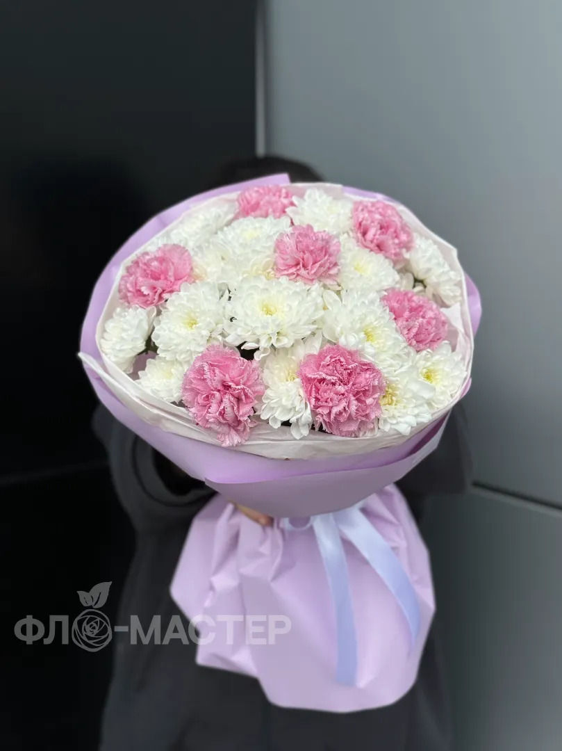 Букет цветов из хризантем и диантусов станет прекрасным продолжением вашей истории. Мы можем отправить его утром после вашего свидания с запиской. Настроение на целый день обеспечено.