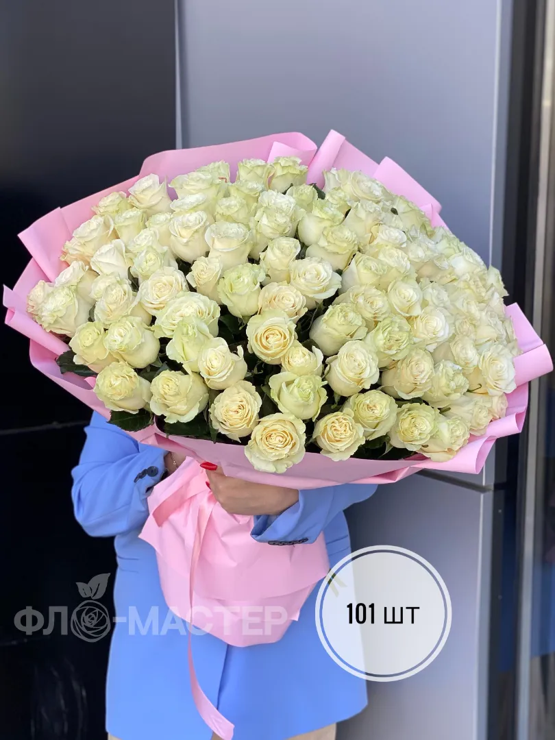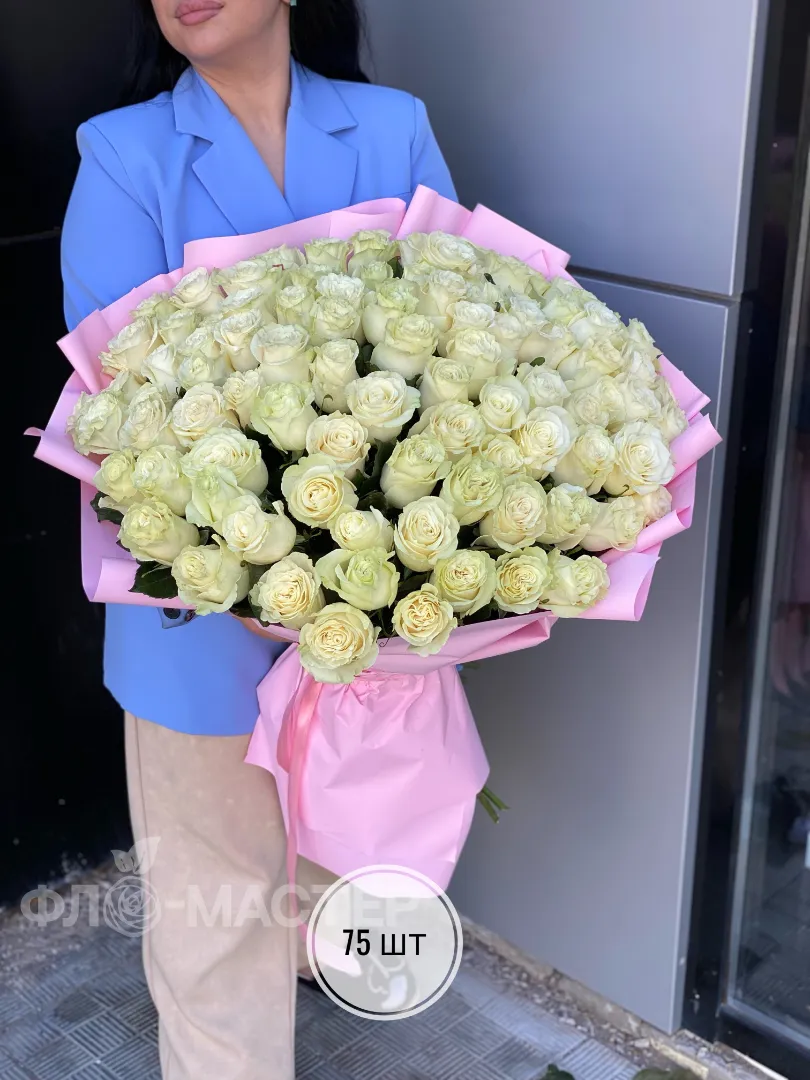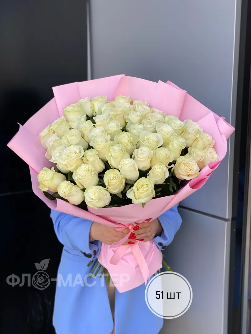 Букет белых роз Эквадор 50 см (51шт, 75шт, 101шт)