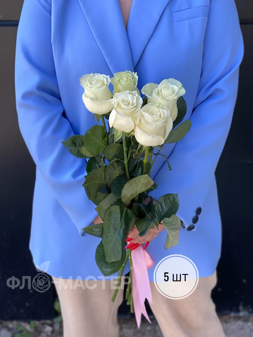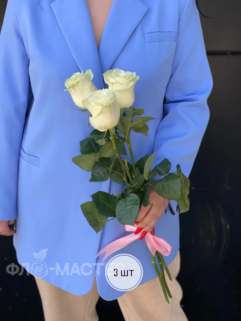Белая роза Эквадор 60 см (1шт, 3шт, 5шт, 7шт, 9шт)