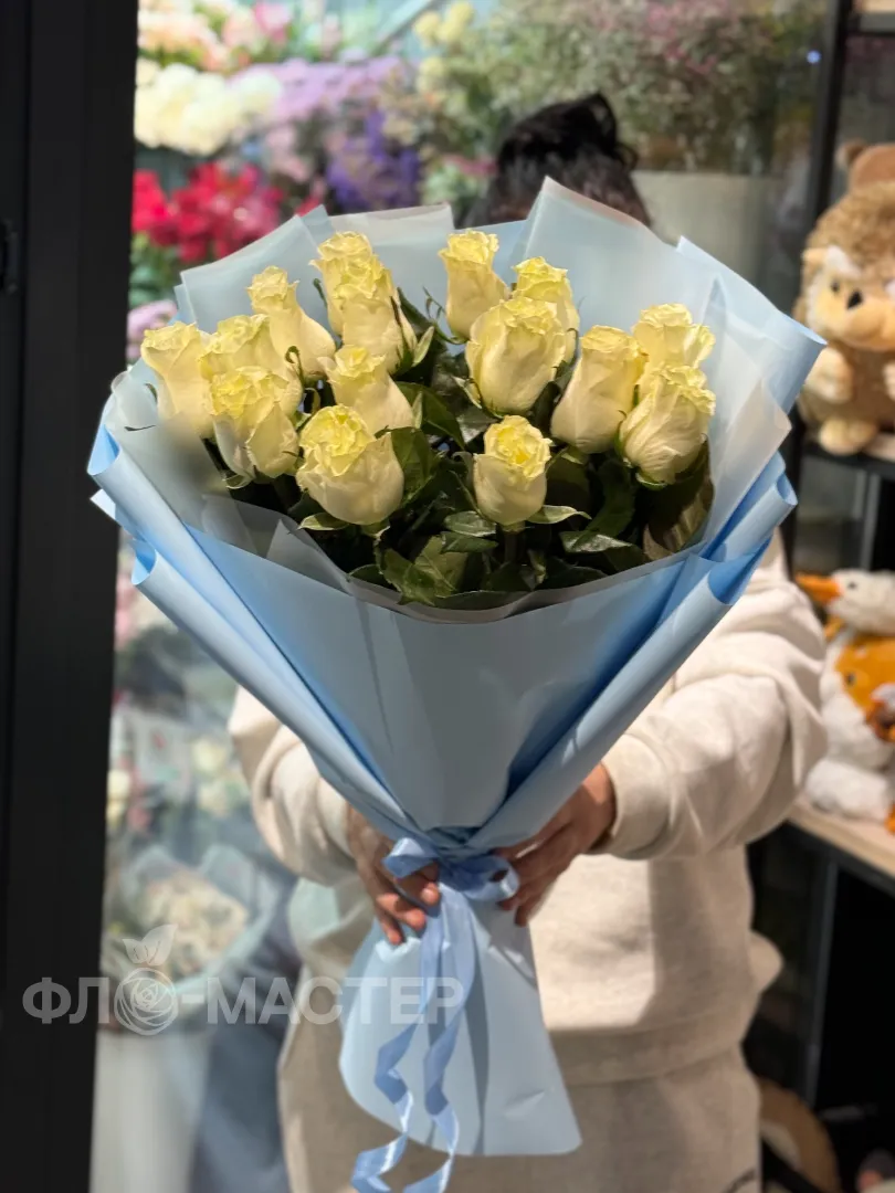 Настоящая дань зимнему волшебству. Белые розы символизируют чистоту и невинность, их бархатистые лепестки напоминают о свежем, утреннем снегу, который мягко укрывает землю в зимний период.