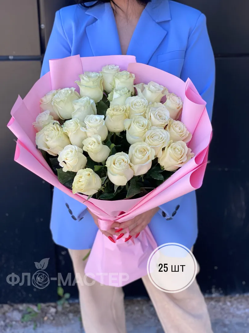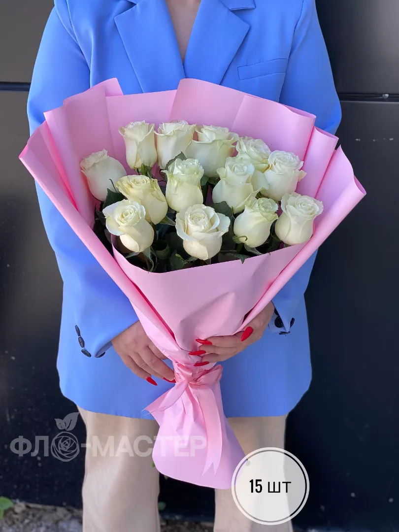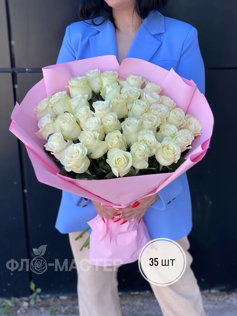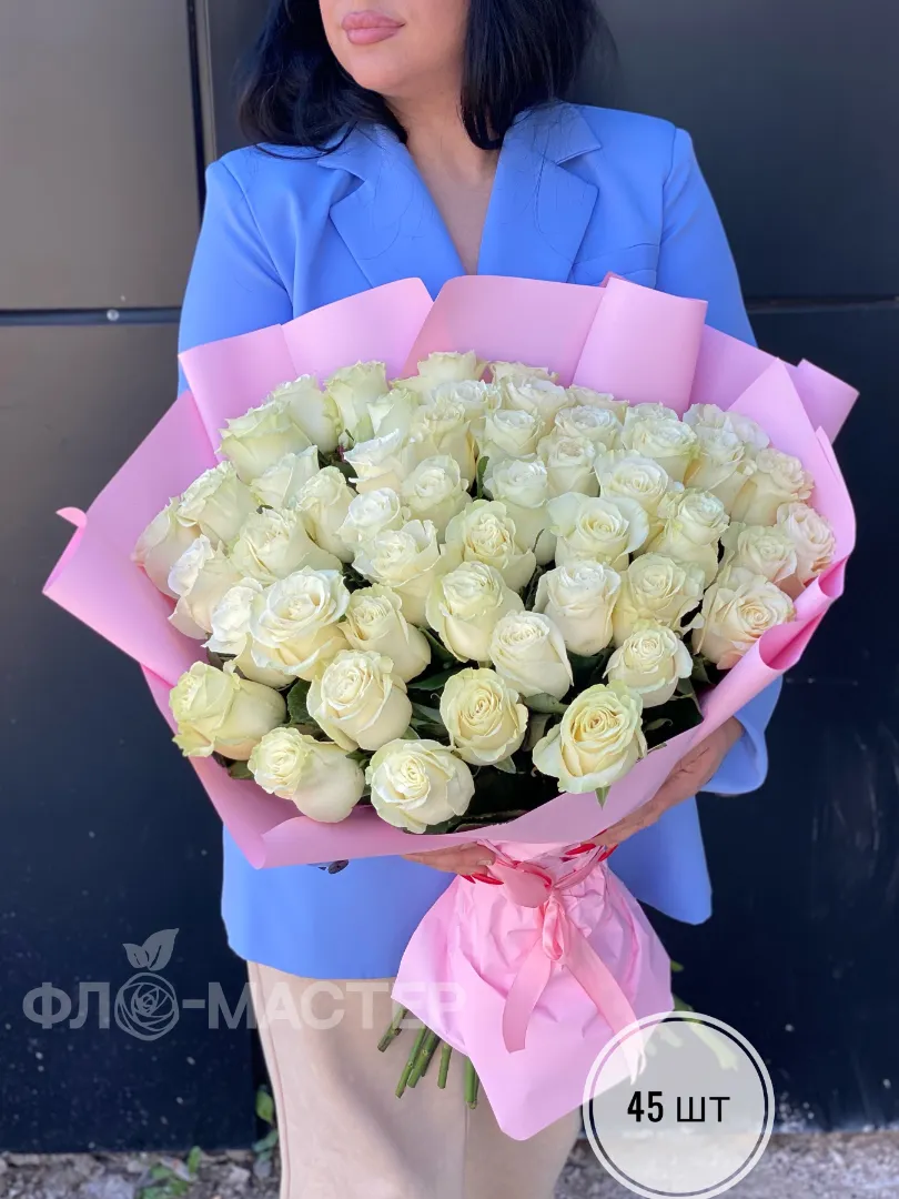 Букет белых роз Эквадор 60 см (15шт, 25шт, 35шт, 45шт)