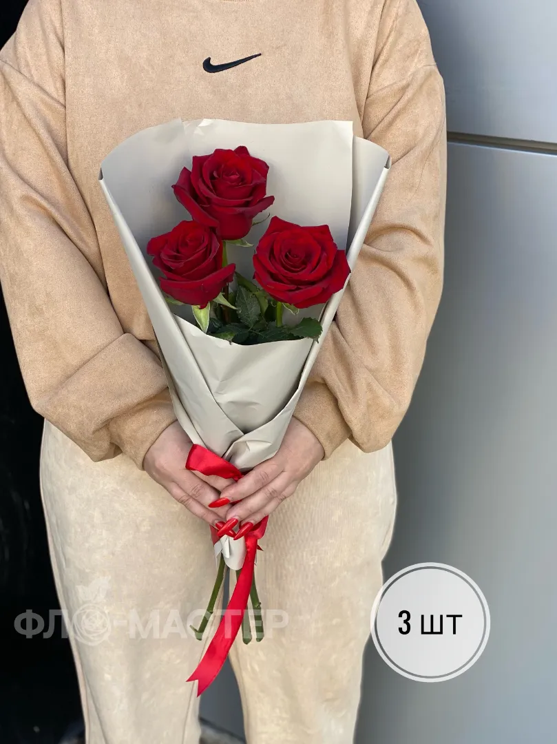 Букет красные розы Эквадор 50 см (3шт, 5шт, 7шт, 9шт, 11шт)