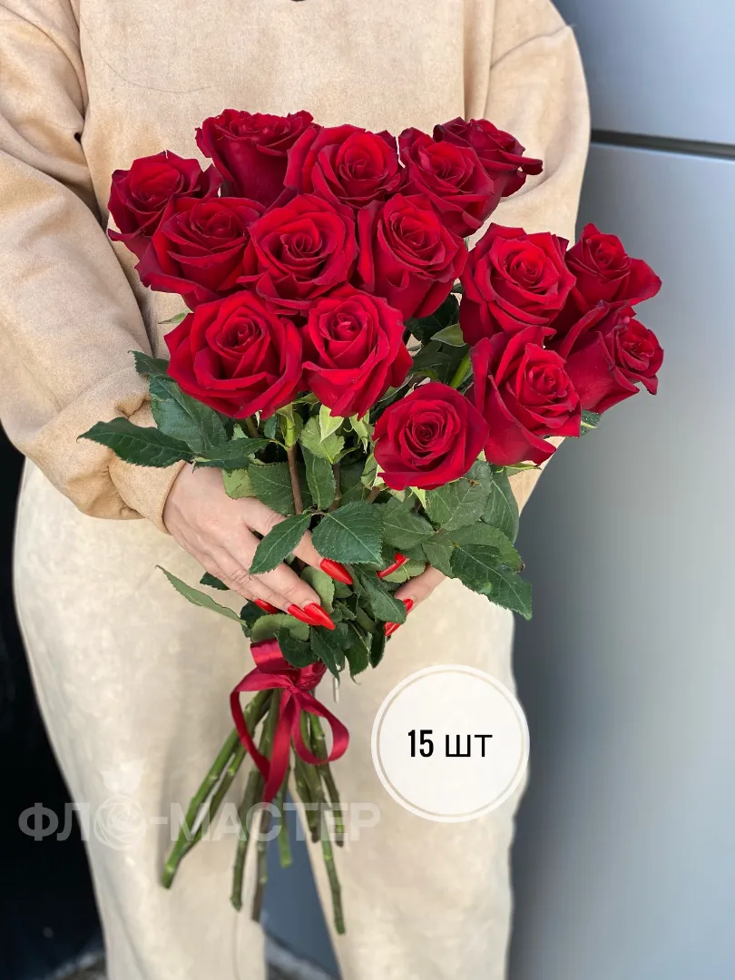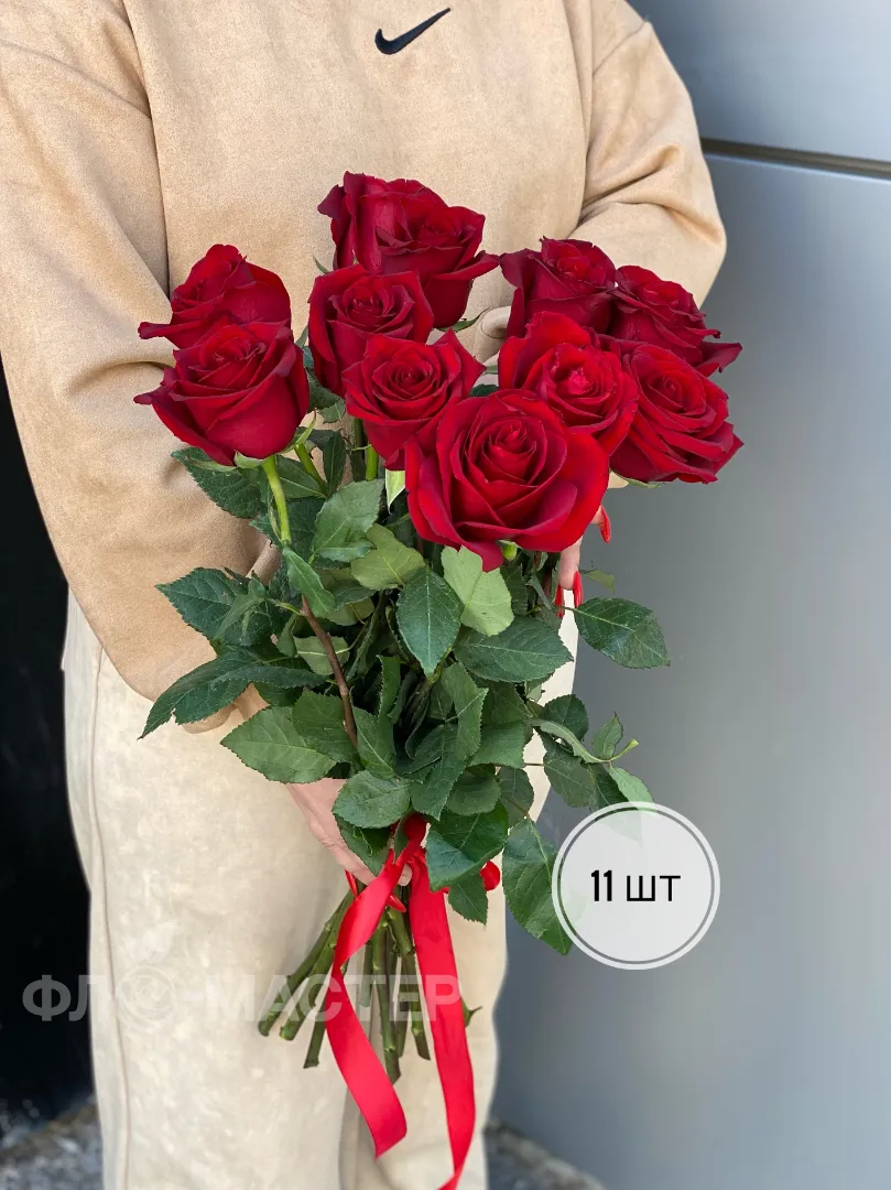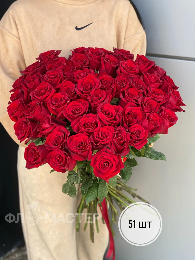 Красные розы Эквадор 50 см (11шт, 15шт, 25шт, 35шт, 51шт)