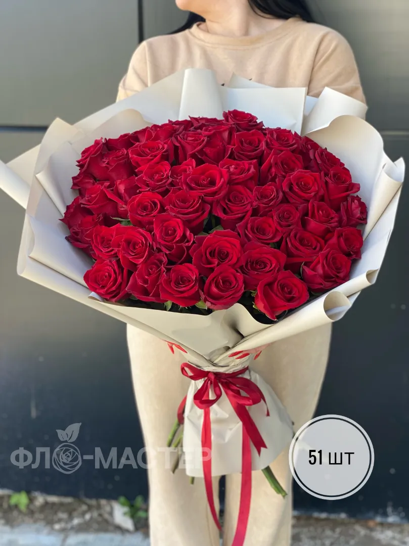 Букет красных роз Эквадор 60 см (15шт, 25шт,35шт,51шт)