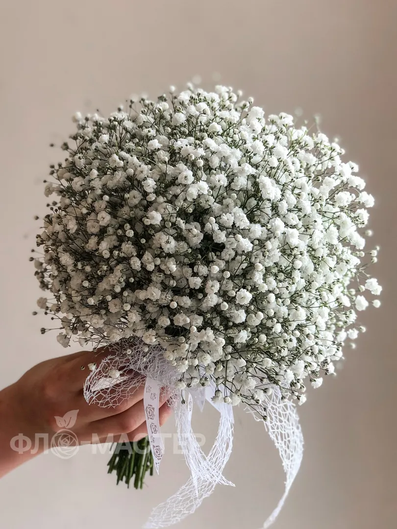 Нежный букет с гипсофилами простоит у невесты до года и будет радовать воспоминаниями о таком замечательном дне.