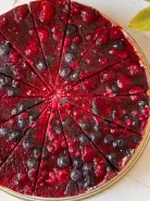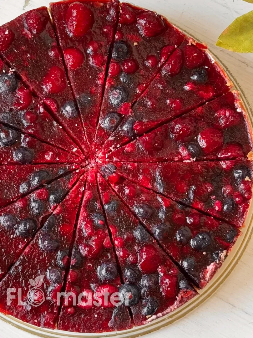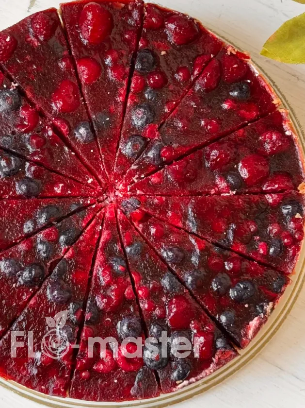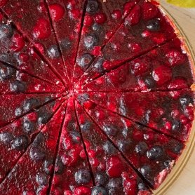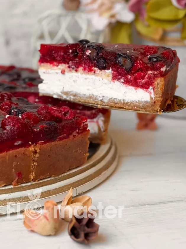 Нежнейший чизкейк из творожного сыра на сливочно-песочном корже, усыпанный лесными ягодами в желе.
