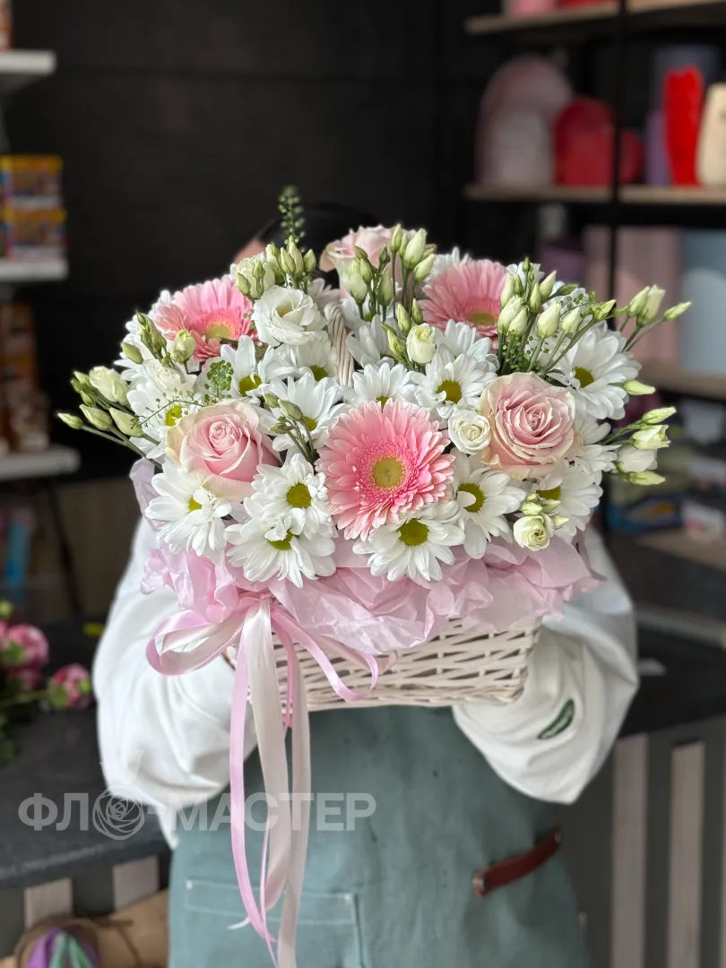 Плетеное лукошко с полевом стиле порадует каждую, не нужно искать вазу, нужно лишь поливать губочку в которой стоят цветочки каждые 2 дня и наслаждаться цветами.