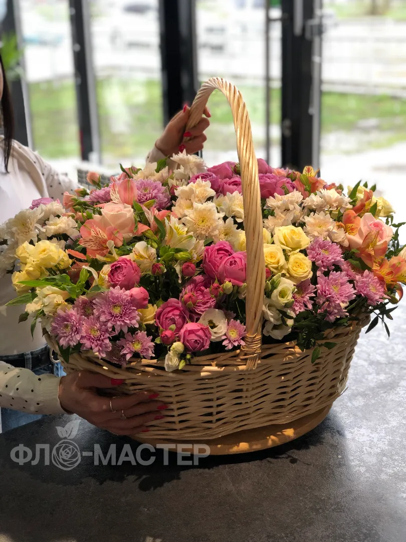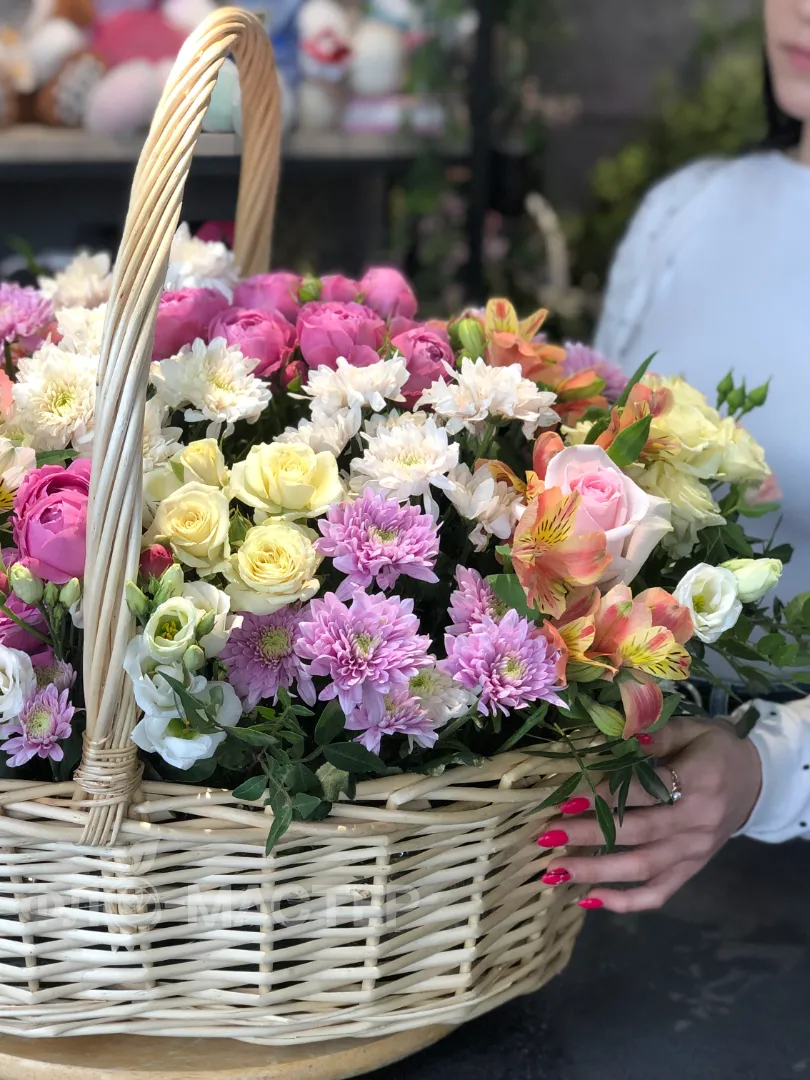 Огромная корзина из большого разнообразия цветов, которую она запомнит навсегда. А аромат цветов будет напоминать о вас.