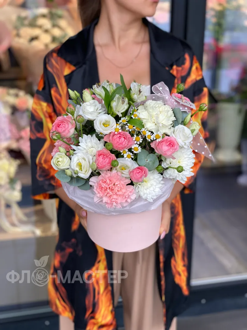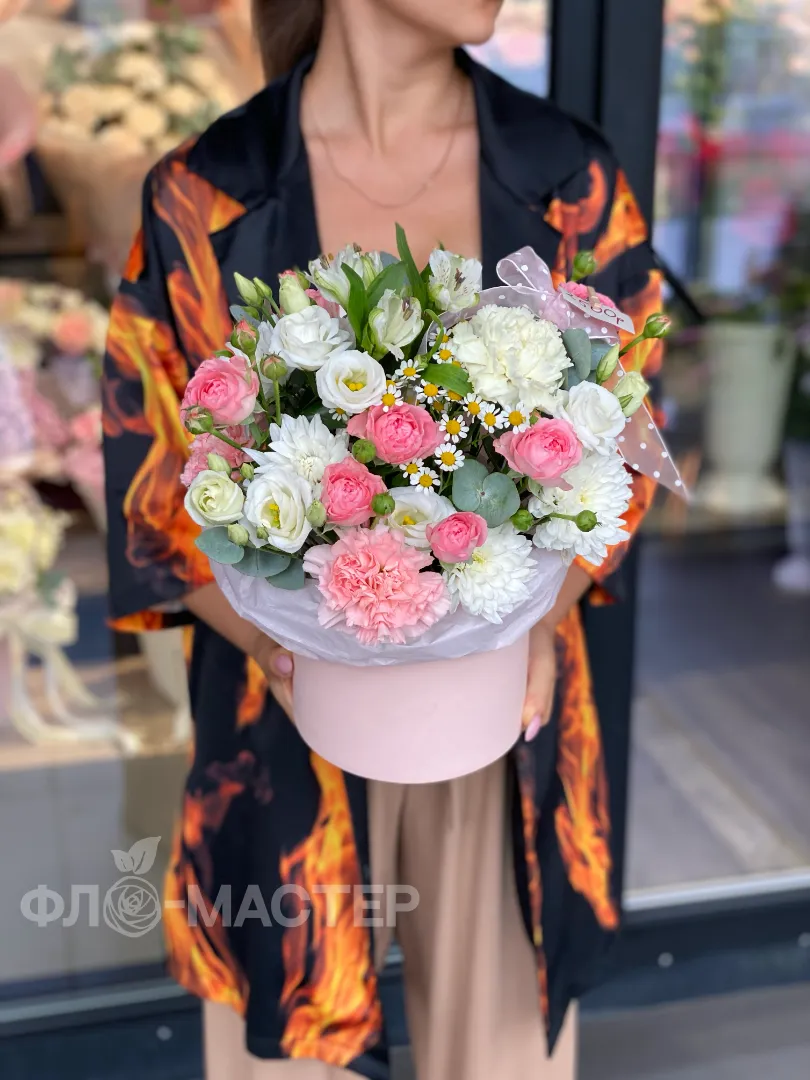 Цветочная композиция в нежных тонах будет прекрасным подарком для вашей любимой